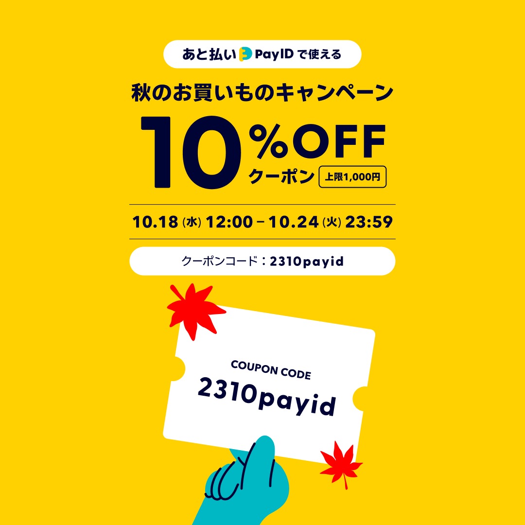 BASE店で「あと払い(Pay ID)」を利用してお買い物いただくと、その場で10%OFF(上限1,000)クーポンをプレゼントいたします🎁
