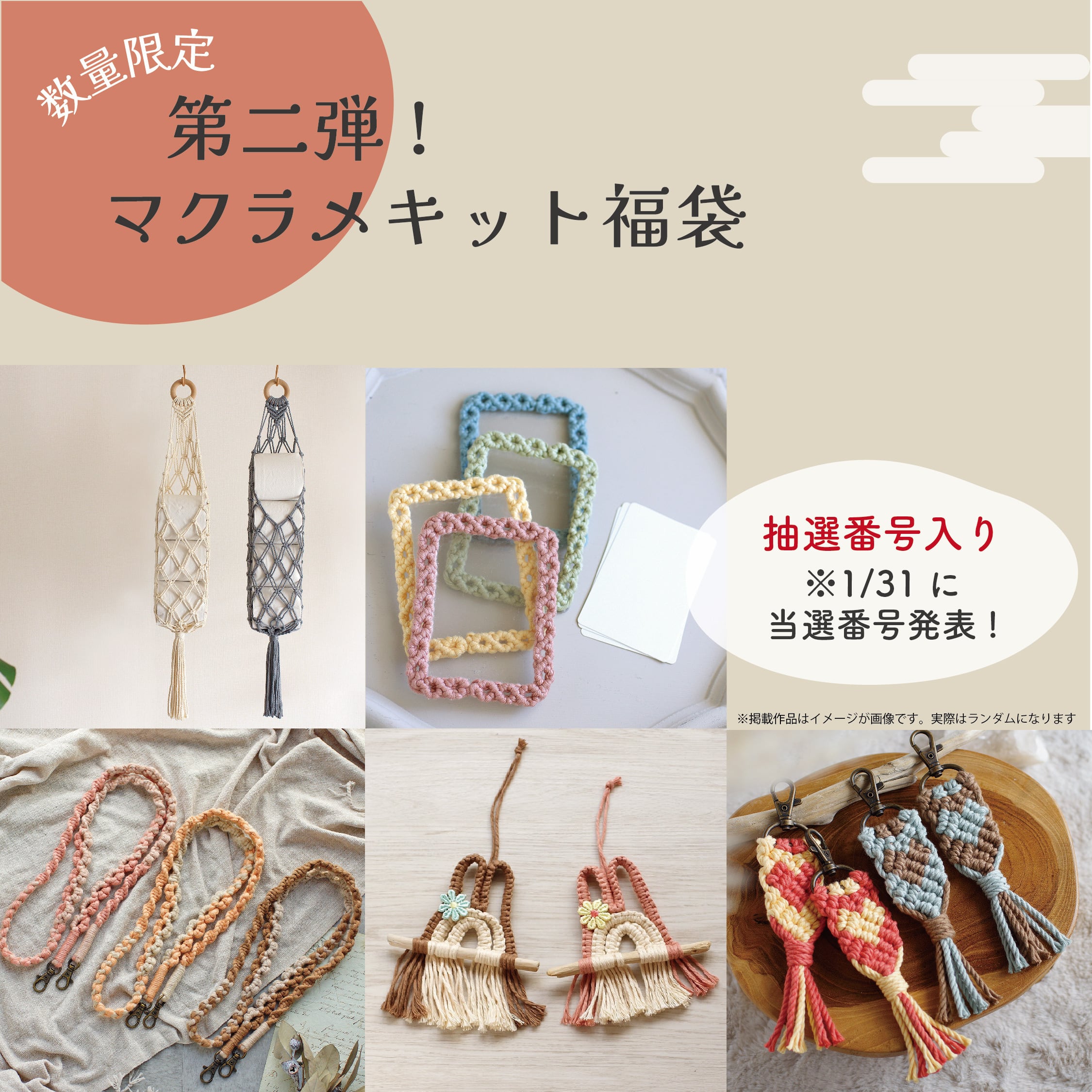 ① マクラメキット 3〜5種類程度